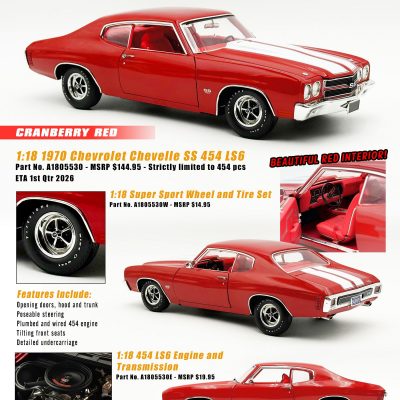 This 1970 Chevrolet Chevelle SS 454 LS6 is decked out in a stunning Cranberry Red paint with white racing stripes with a stunning red interior. Lurking under the cowl induction hood is the famed LS6 engine churning out 450 hp and 500 lb. ft or torque. The car was designed to look fast standing still! With the SS and 454 emblems that adorn the car, making certain competitors knew what they were up against.