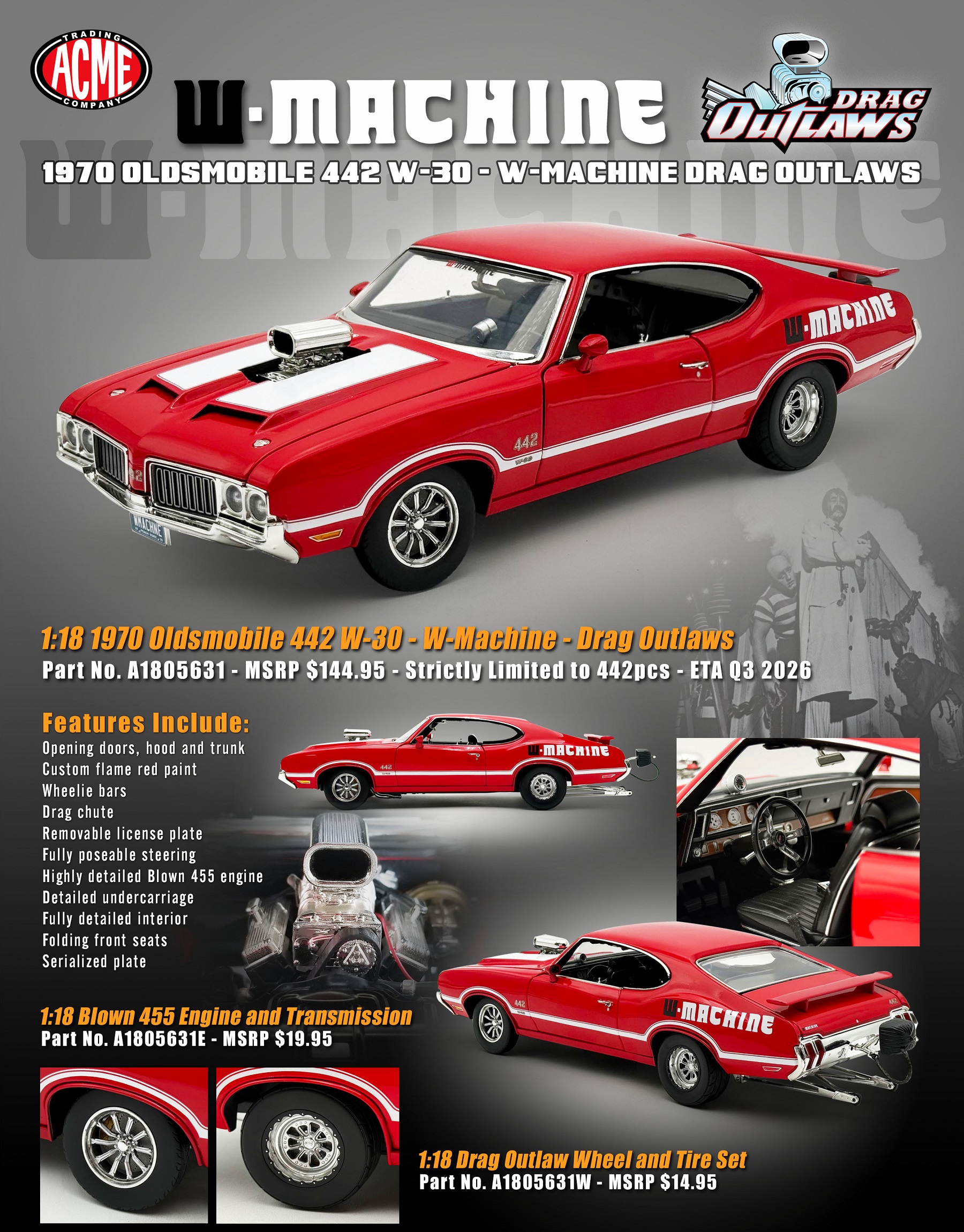 From 1969-1972, Oldsmobile used a mad scientist named Dr. Oldsmobile to promote it’s high performance W Machine muscle cars. This Drag Outlaw 442 W30 is a throwback to those wild and crazy Dr. Olds days.